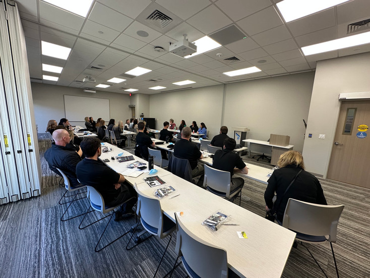 The class then traveled to CHI Health Good Samaritan. The visit started off with a tour of Good Samaritan's Flight/EMS, the morgue, and the cardiovascular hybrid room before sitting down for a discussion with another group of panelists. This panel consisted of Lacey Witt (Richard Young Behavioral Health), Dana Welsh (Good Samaritan Hospital Cancer Center), Joe Radke (Good Samaritan Hospitalist) and Abby Olson (Good Samaritan Care Coordinator). The panel discussed their roles in their respective fields and how the medical scene has evolved over the years, especially with COVID and what it did to the healthcare workforce. A couple of other hot button topics were: having hard conversations with family members about what they