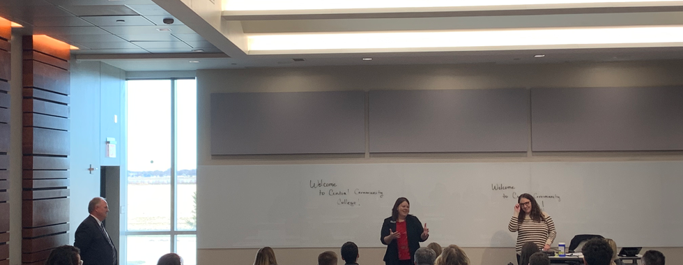 At the Student Union for Lunch, members learned proper lunch etiquette from Brandon Benitz, before traveling to Central Community College (CCC). At CCC, members were given a tour of the campus, and then attended a Nursing Simulation Training by Tami Jones the Nursing Simulation Coordinator, and Marcia Donley, Nursing Instructor, before competing in a Kahoot competition about education in Nebraska and CCC. Members’ last item at CCC was a panel consisting of Dr. Kelly Christensen the Dean of Training/Kearney Center Administrator, Dr. Janel Walton the Dean of Enrollment Management, and Dr. Candace Walton the Vice President of Innovation & Instruction.